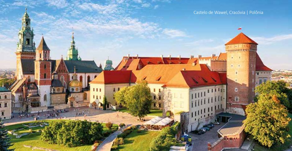 . Entrada a torre do castelo em Kazimierz Dolny, ao Mosteiro de Jasna Gora em Czestochowa, ao museu de Zalipie, ao pátio do Castelo Real de Wawel e as catedrais na colina de Wawel e em Cracóvia