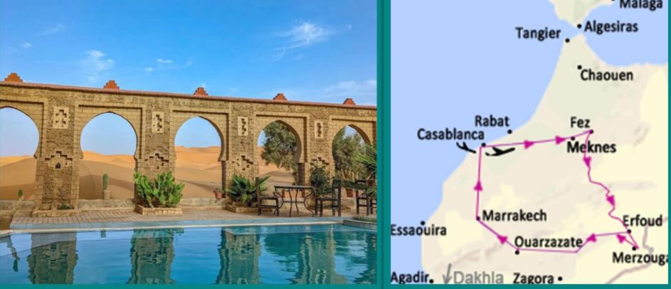 Casablanca - Meknes - Fes - Ifrane - Midelt - Erfoud - Merzouga - Tinghir - Ouarzazate - Ait Benhaddou - Marrakech -Casablanca